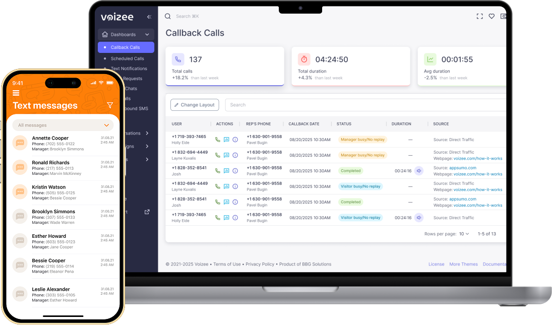 Manage contacts, notes, tags, and communication history inside Voizee.